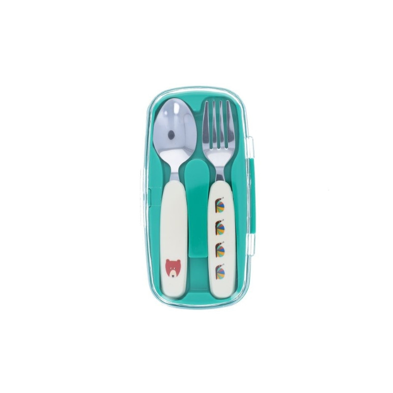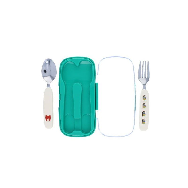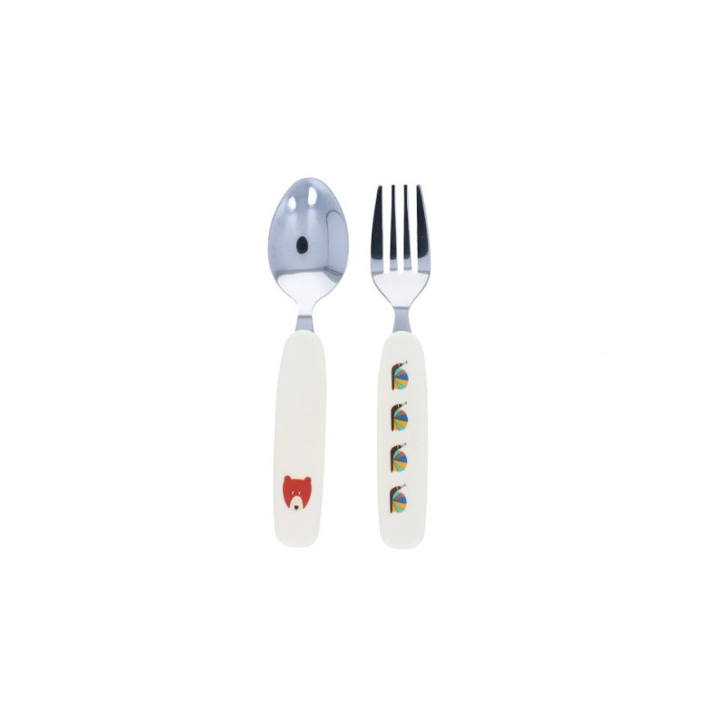 Un duo cuillère et fourchette aux motifs animaux de la forêt, léger et adapté aux petites mains. Rangés dans leur boîte pratique, ces couverts se transportent partout pour accompagner les repas des enfants avec style et facilité.