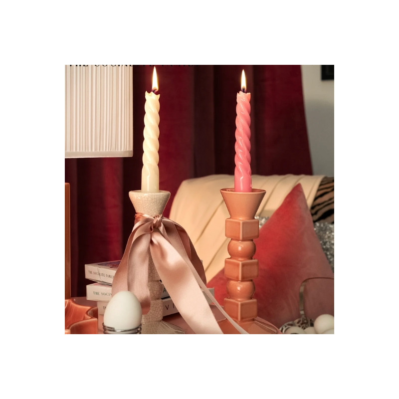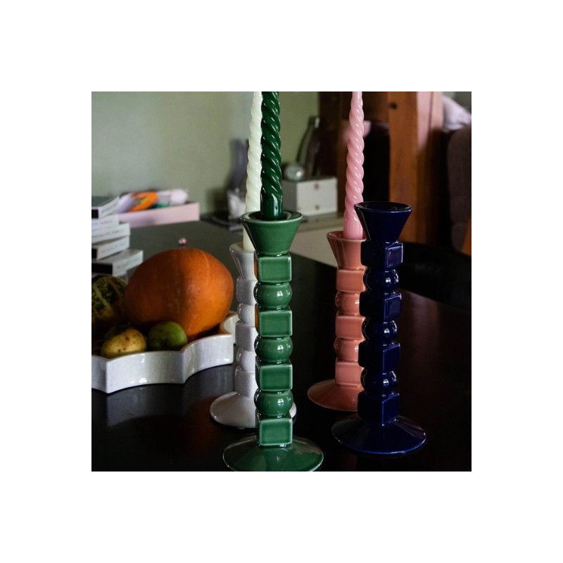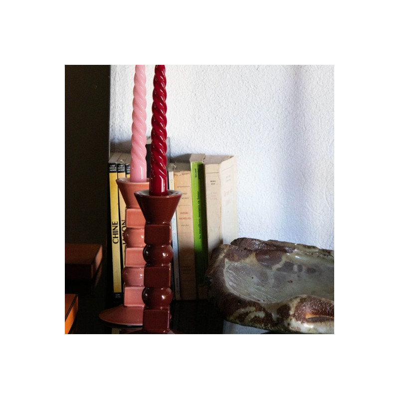 Ce chandelier en céramique rose poudré apporte une touche élégante et délicate à votre intérieur. Sa finition en émail brillant lui donne un aspect lumineux, parfait pour sublimer un cierge de taille standard (Ø 2,2 cm). Stable et protecteur grâce à ses 4 patins en feutre, il s’intègre facilement à tous les styles de décoration. Entièrement fabriqué au Portugal, il allie savoir-faire et charme intemporel.