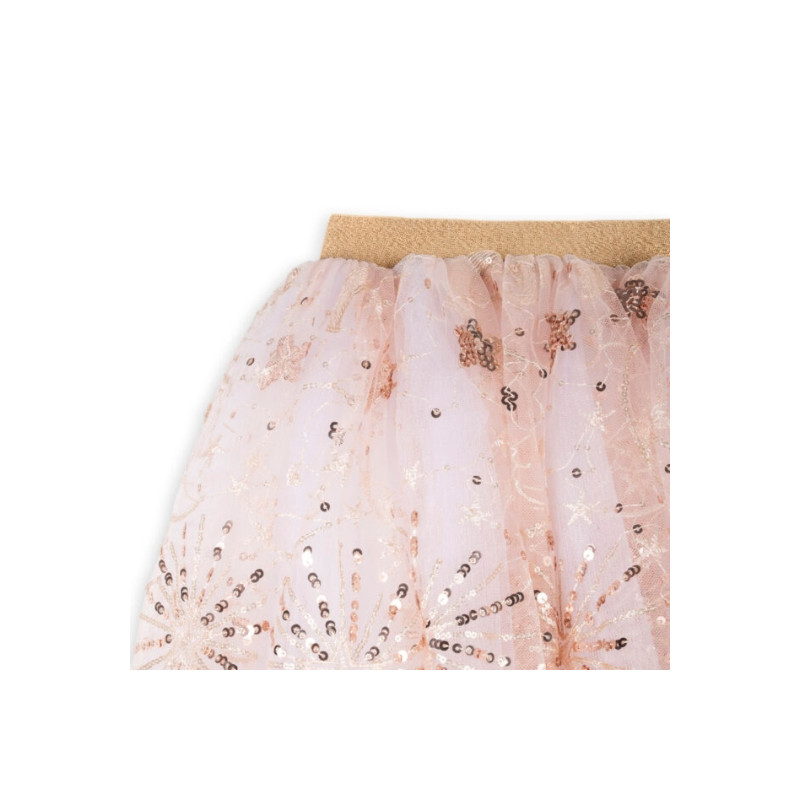Cette jupe brodée de la marque Ratatam est l’accessoire idéal pour une apparence unique et féerique. Elle est dotée d’une taille élastique, ce qui la rend incroyablement confortable et parfaitement ajustée. Cette jupe dispose de jolies broderies lunes et étoiles en sequins rose gold.