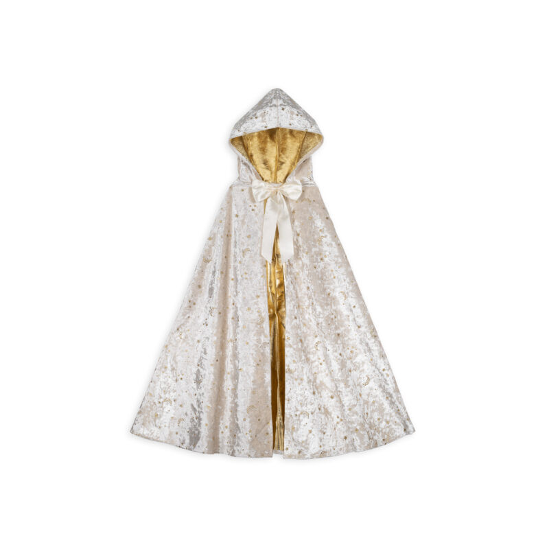Transformez chaque jour de votre enfant en une aventure féérique avec cette superbe cape Fairy en velours de la marque Ratatam ! Cette cape longue dispose d'une capuche et d'une attache en velcro cachée sous un joli noeud en satin, permettant à votre enfant de l'attacher facilement. Elle est ornée de petites étoiles dorées qui scintillent. C'est l'accessoire idéal pour se transformer en princesse ou prince des forêts enchantées. Convient de 3 à 10 ans.