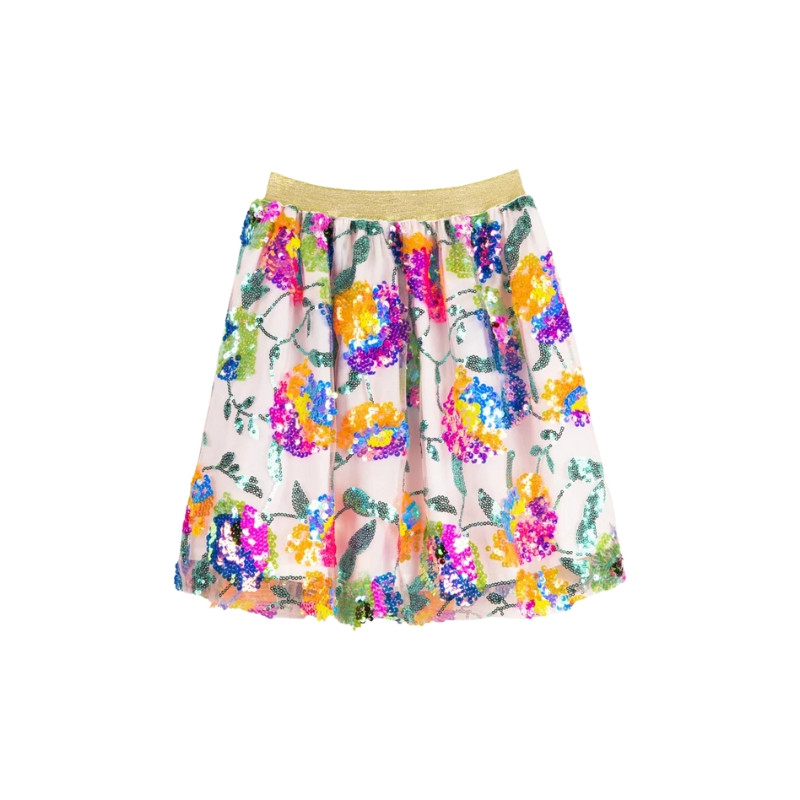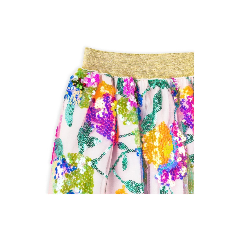 - Avec son élastique doré pailleté et ses sequins brodés, cette jupe ajoute une touche magique à chaque tenue.