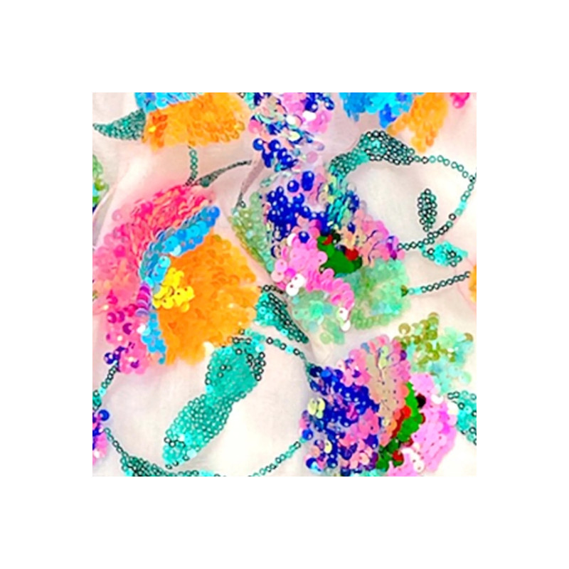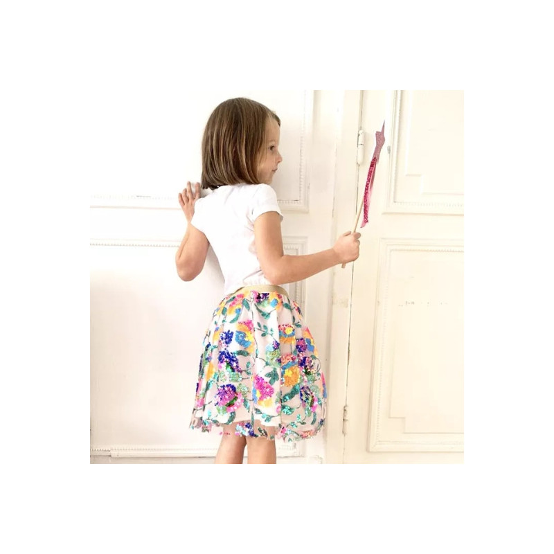 Préparez-vous à entendre des "Wahouuuuu" avec cette jupe éclatante à motifs exotiques ! La pupe paradis à sequins de chez Ratatam est un véritable tourbillon de couleurs vives et de brillance scintillante grâce à ses sequins multicolores.