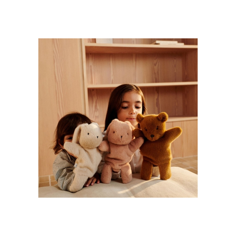 Voici le doudou marionnette lapin Honor de la marque Liewood, prêt à captiver les petits aventuriers avec des histoires enchantées et des câlins tout doux !