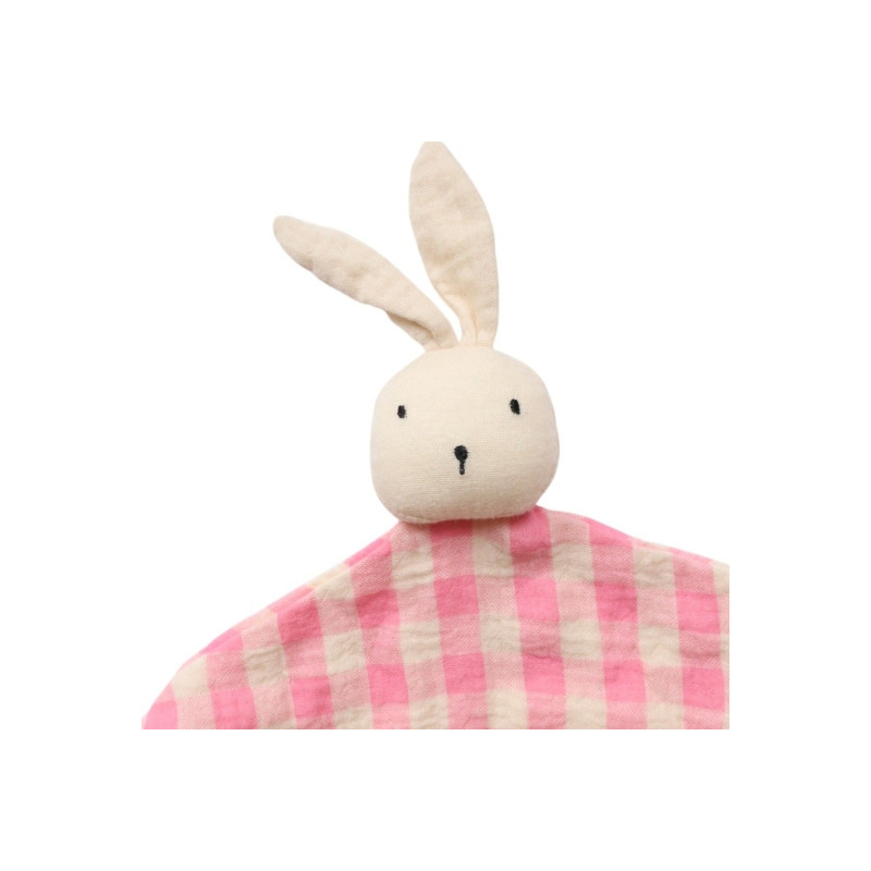 Adorable doudou en gaze de coton tout doux, avec tête de lapin et tissu à carreaux roses. Léger, facile à attraper et lavable, il accompagne bébé dès la naissance et fait une parfaite idée cadeau de naissance.