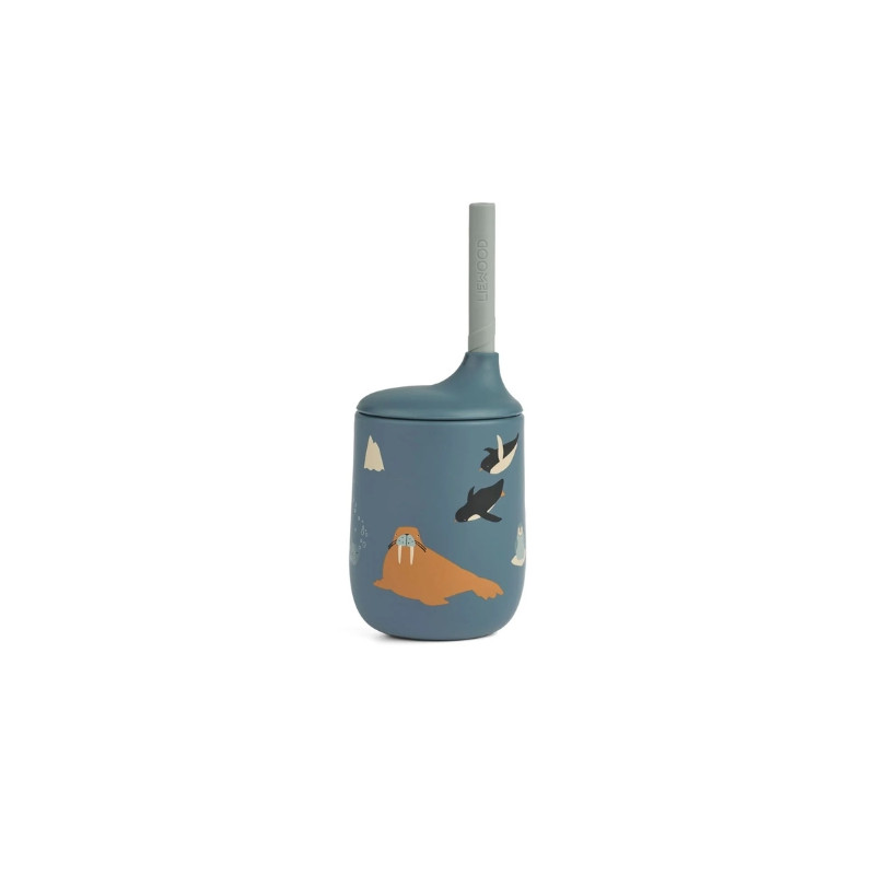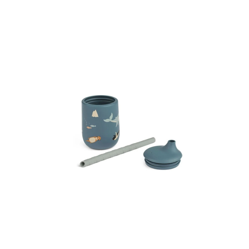 Liewood : Gobelet avec paille Ellis 230ml - artic sea / ocean view