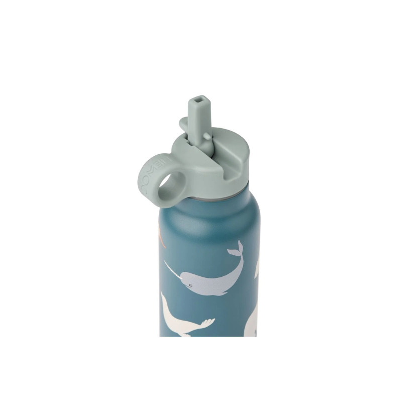 La gourde FALK de Liewood allie praticité et durabilité. Fabriquée à 80 % en acier inoxydable recyclé, elle est isotherme (12h au froid, 6h au chaud) et parfaitement adaptée aux petites mains. Étanche et dotée d’un couvercle à paille escamotable avec anse, elle est idéale pour les sorties ou l’école.
