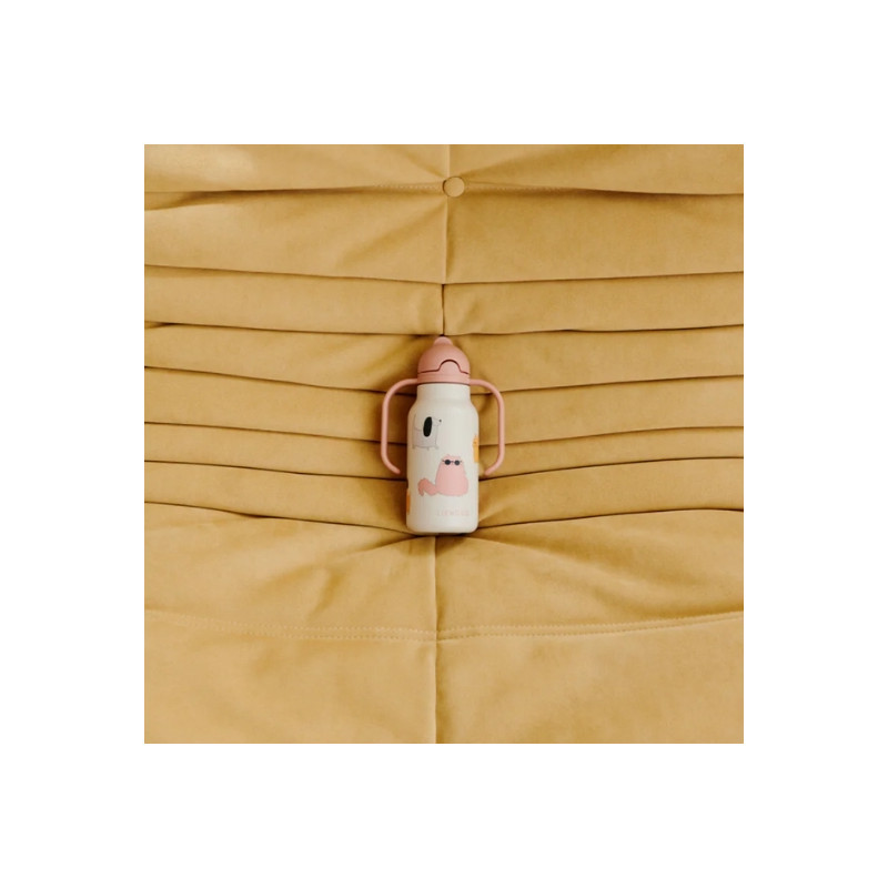 Gourde isotherme de 250 ml en acier inoxydable recyclé, conçue pour les tout-petits. Munie de deux poignées faciles à saisir et d’une paille intégrée. Garde les boissons froides jusqu’à 12 h et chaudes jusqu’à 6 h. Étanche et idéale pour l’apprentissage de l’autonomie.