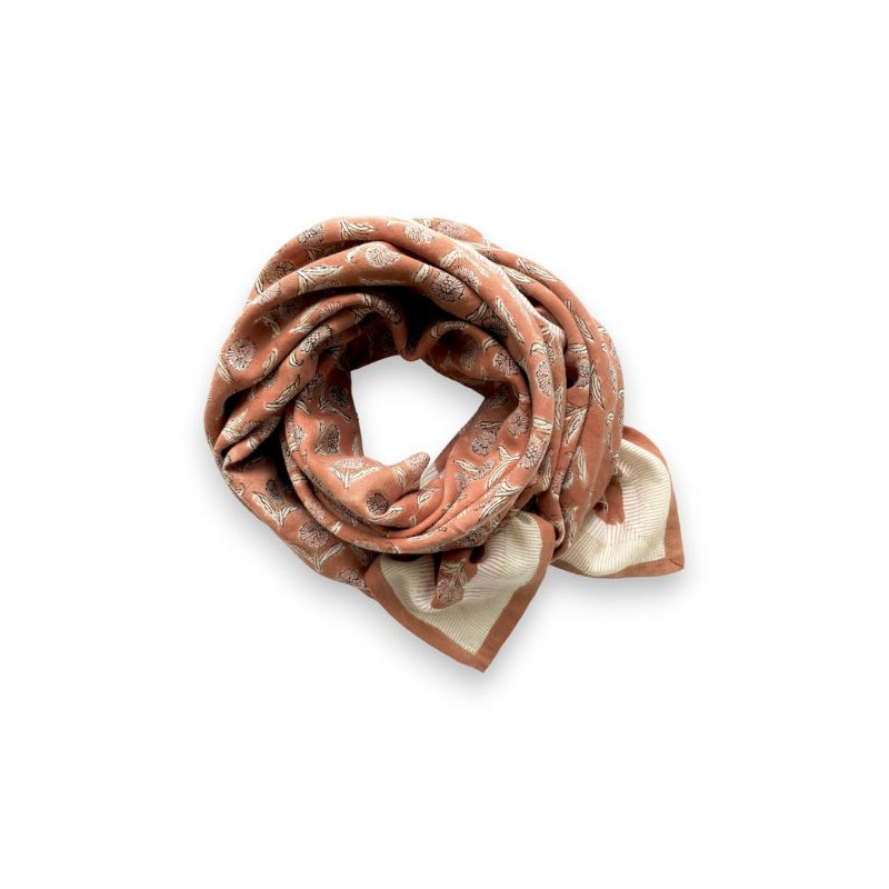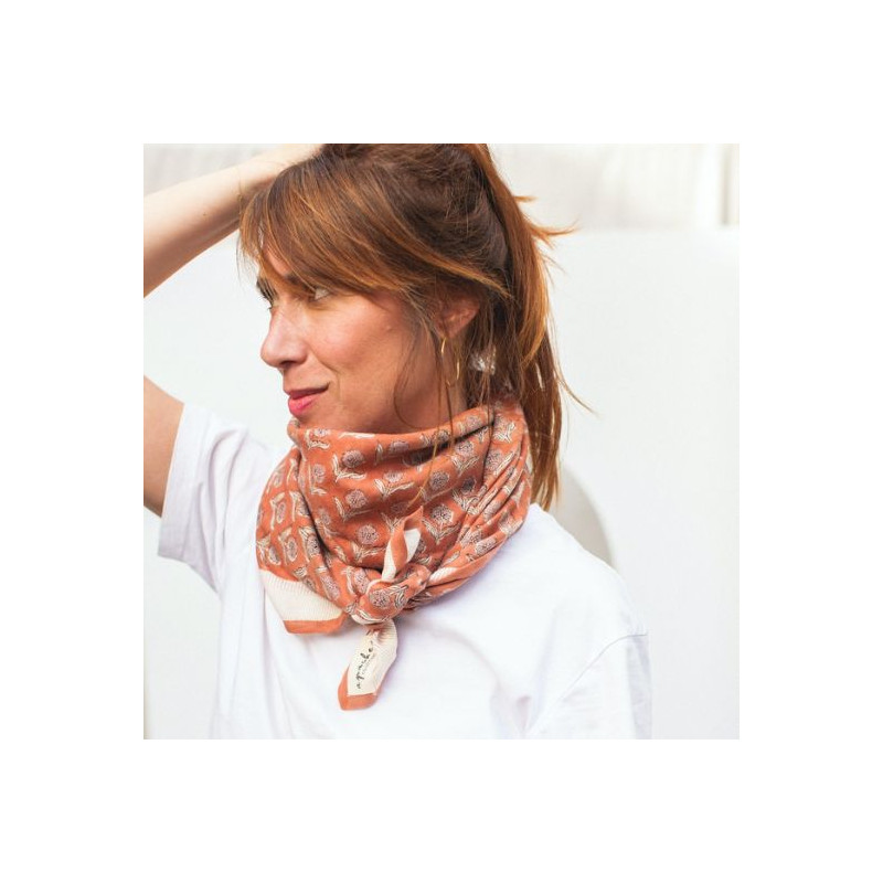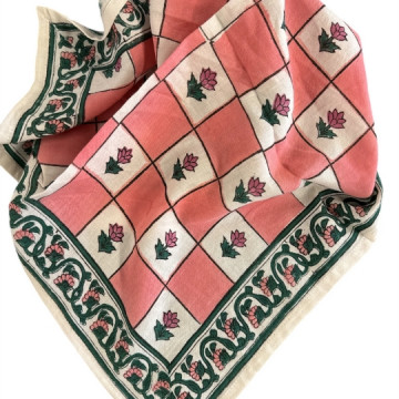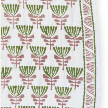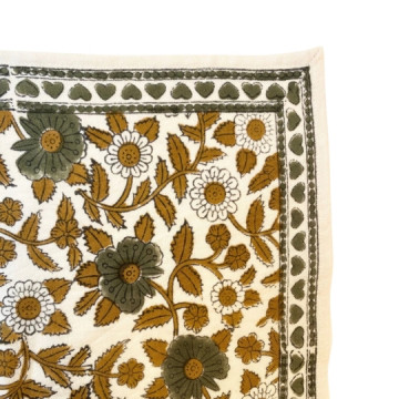 Il est confectionné artisanalement grâce à la technique indienne du block-print. Ses couleurs sont réalisées à partir de pigments naturels. Cette confection manuelle peut entraîner certaines "irrégularités", ce qui en fait tout son charme.