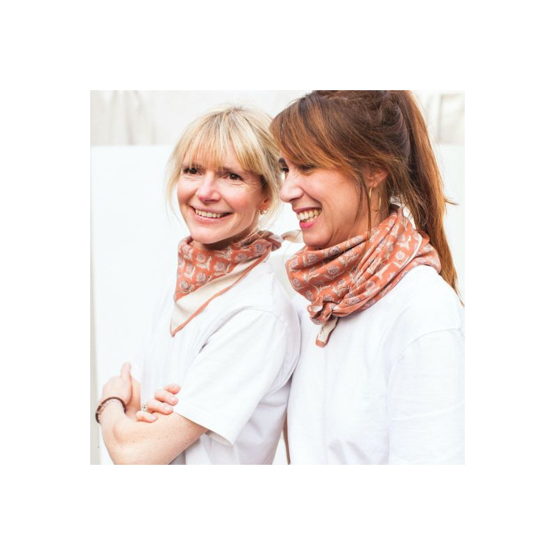 Pour chacune de ses collections, la marque s'inspire des couleurs de la nature et met en scène des imprimés exclusifs. Chaque motif et couleur sont pensés avec amour en France, pour ensuite être confectionnés avec soin en Inde grâce à la technique du block-print. Ce travail artisanal, réalisé à la main à partir d'un tampon sculpté dans le bois et de pigments naturels, fait de chaque accessoire, une pièce unique.