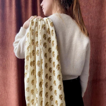 - Un motif unique, imprimé à la main : Chaque foulard est une pièce rare, avec ses légères irrégularités qui en font tout le charme.
