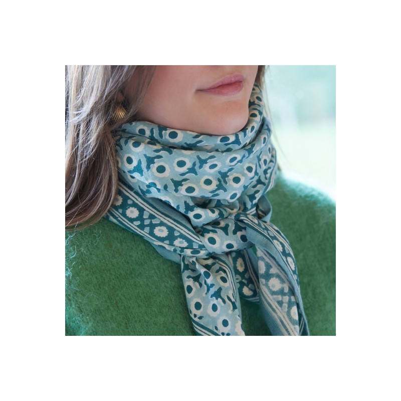 Un soupçon d’exotisme, une pincée de tradition indienne et une bonne dose d’élégance : voici le foulard Isha couleur blue green, une pièce aussi intemporelle que captivante signée Bonheur du Jour.