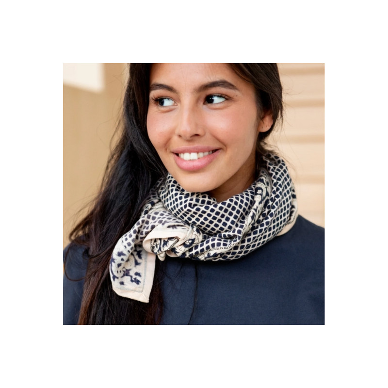 Envie de pimper votre quotidien sans efforts ? Le foulard Latika mosaïc graphite Apaches Collections, c’est le combo parfait entre élégance graphique et confort absolu. Son motif géométrique indigo ultra stylé apporte une touche contemporaine à toutes vos tenues, des plus casuals aux plus chics.