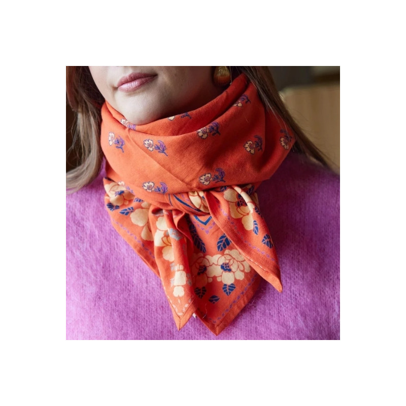 Ce foulard n'est pas juste un accessoire, c’est votre nouveau rayon de soleil ! Avec son imprimé fleurs "à l’indienne" délicatement dessiné par Bonheur du Jour, il promet une touche bohème et joyeuse à chaque tenue.