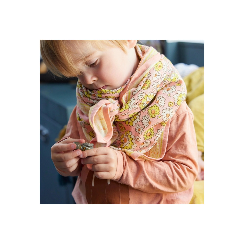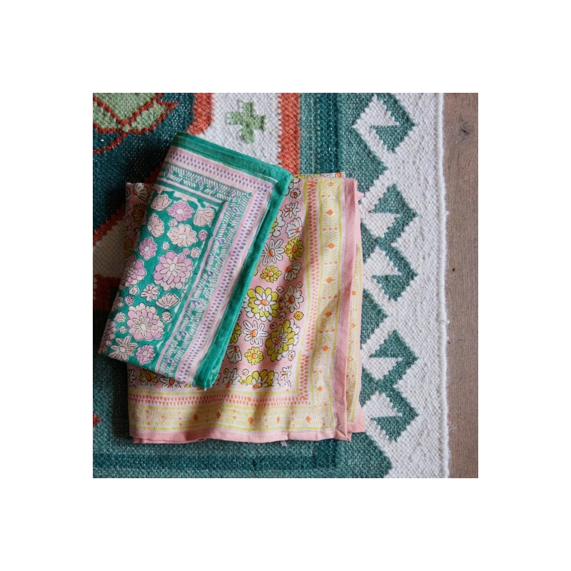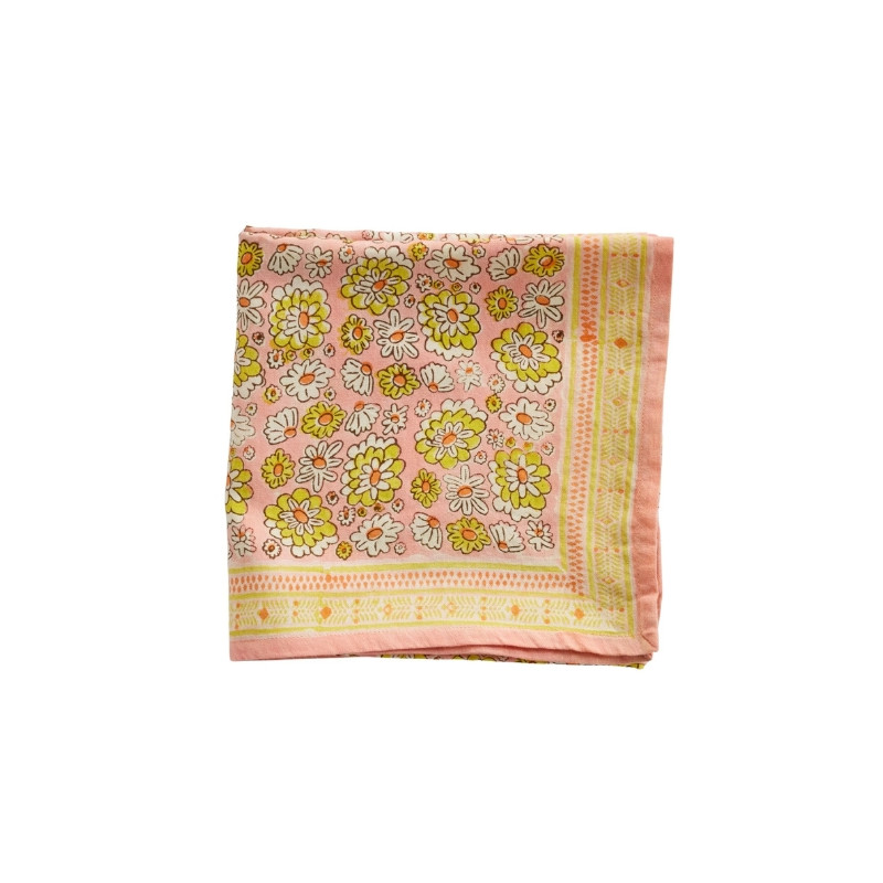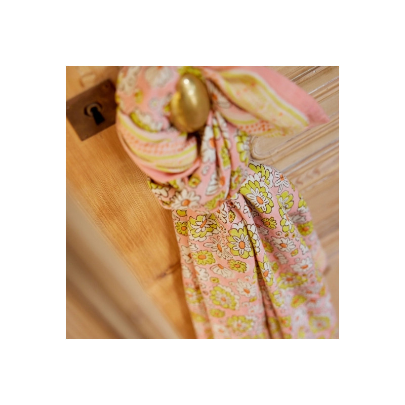 Foulard en 100% coton, imprimé exclusif Bonheur du Jour réalisé à la main en blockprint. Léger, bohème et facile à porter.