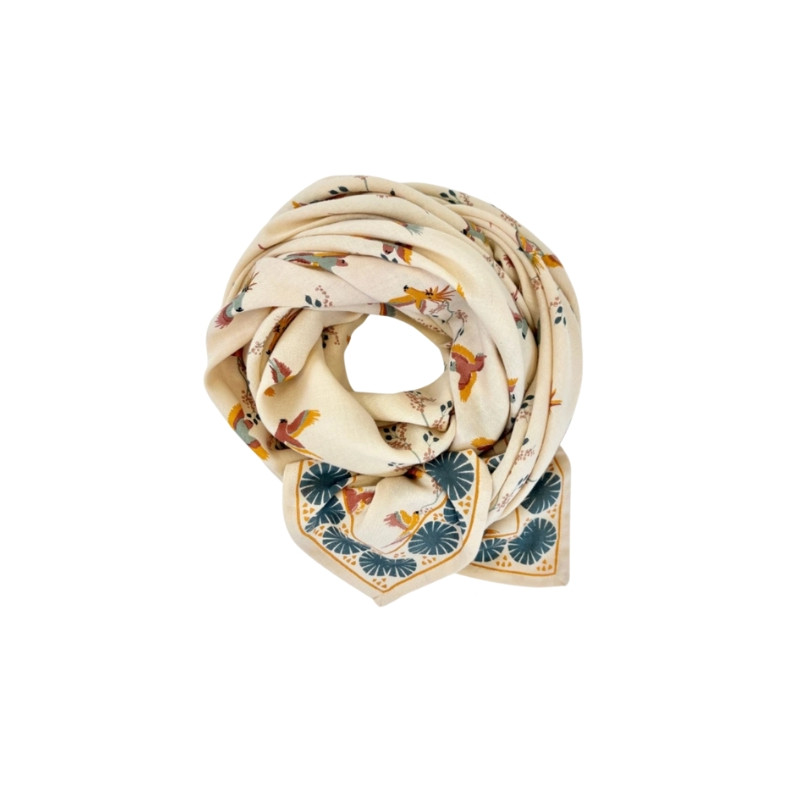 Foulard Latika cerisier de chez Apaches Collections coloris macadamia. Léger et élégant, parfait pour accessoiriser vos tenues avec douceur et style.