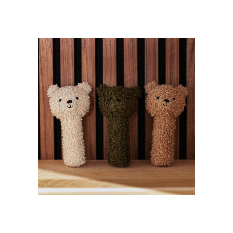 Découvrez ce petit hochet Teddy bear coloris biscuit de la marque Jollein. Sa forme facile à saisir a été conçue pour les petites mains de votre bébé. Idéal pour développer sa motricité fine, il fait un doux bruit de grelot. Cet ourson tout doux servira de compagnon réconfortant contre lequel bébé pourra se blottir.