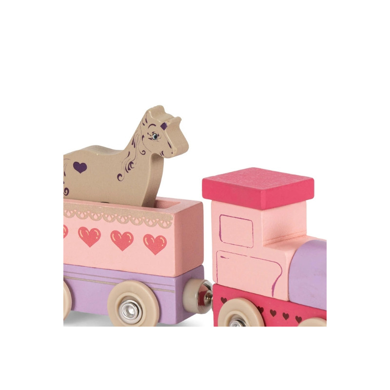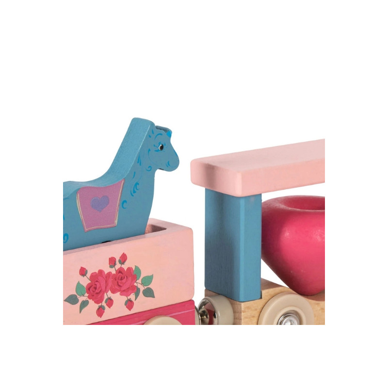 Train en bois de hêtre certifié FSC™ avec six wagons magnétiques et quatre licornes. Adapté dès 18 mois, marquage CE.