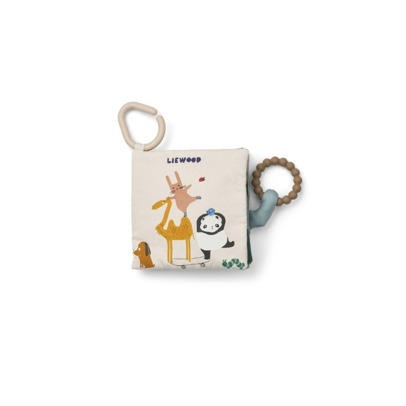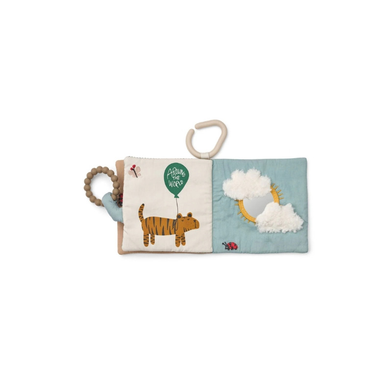 Le livre d’histoires en tissu FEY invite les petites mains à explorer des pages toutes douces peuplées d’animaux adorables et de détails interactifs. Conçu pour éveiller la curiosité, il stimule les sens grâce à un miroir intégré, des textures froissées et un anneau de dentition en silicone.