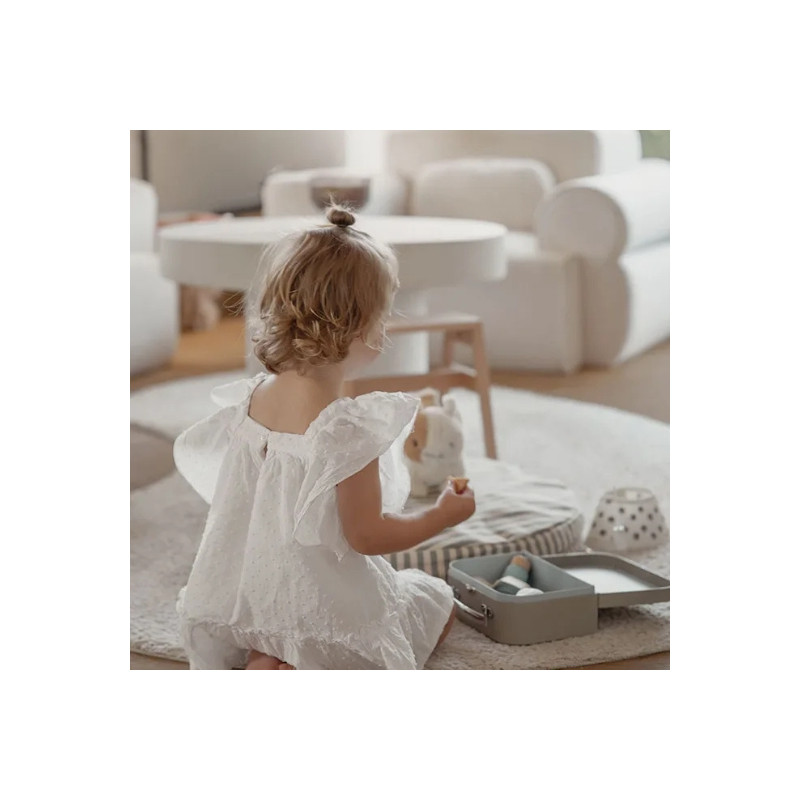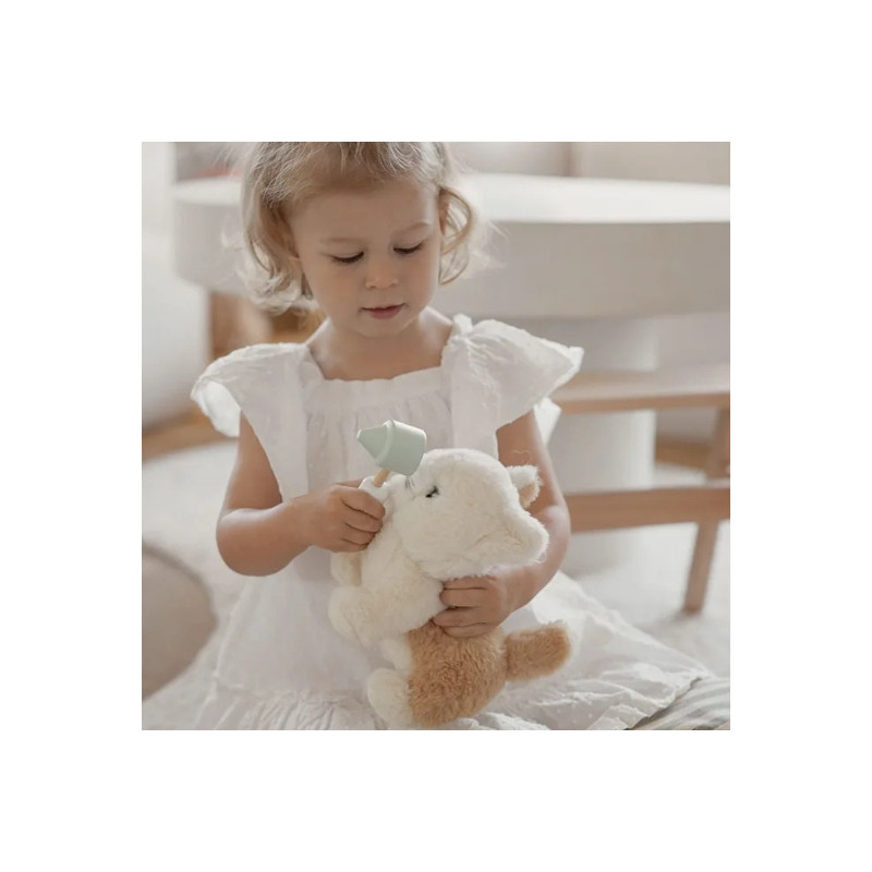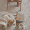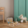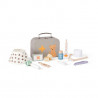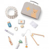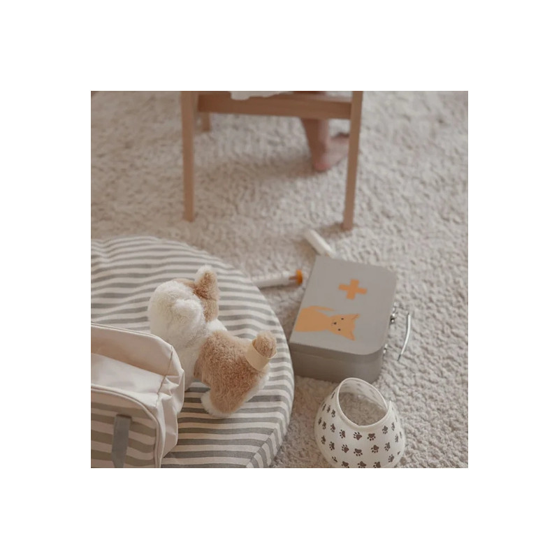 Ensemble vétérinaire signé Kid’s Concept : accessoires complets (seringue, stéthoscope, otoscope, collier conique…) rangés dans un sac en carton. Parfait pour soigner les peluches et encourager le jeu d’imitation.