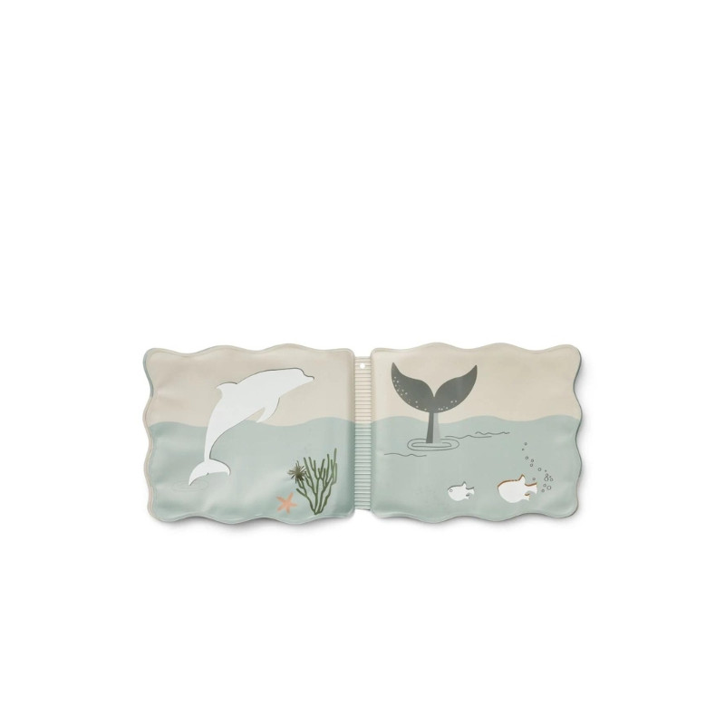 Plongez dans l'univers de ce livre de bain Waylon, arborant son imprimé "sea creature / sandy" de chez Liewood. Étanche, ce livre est conçu pour divertir et éveiller les bébés pendant leur moment de baignade. Rempli d'illustrations représentant des créatures marines et des personnages cachés qui apparaissent au contact de l'eau, il offre une activité sensorielle et créative assurée !