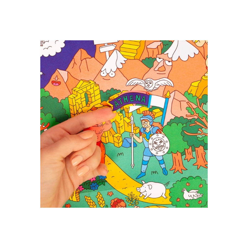 Découvrez le poster géant accompagné de stickers de la marque OMY et plongez dans l'univers de la "mythologie". À l’aide des stickers, pars à la découverte des fonctions, pouvoirs et attributs des Déesses et des Dieux. Il stimule le sens de l'observation, développe la concentration et favorise le plaisir d'apprendre. C'est l'activité créative pour apprendre en s'amusant !