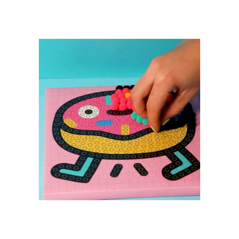 - +500 pompons colorés pour une œuvre tout en relief