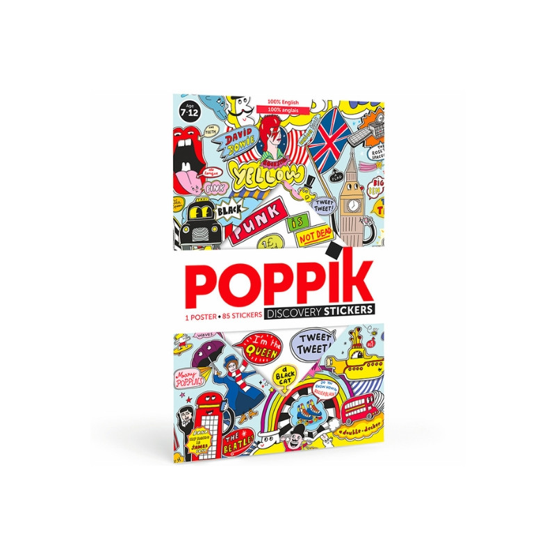 Un poster XXL et 85 stickers pour découvrir l’anglais dès 7 ans à travers la culture britannique. Fun et éducatif, signé Poppik.