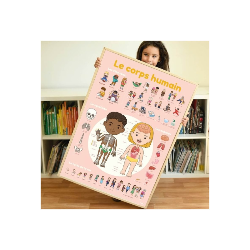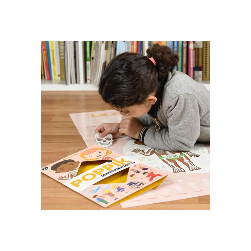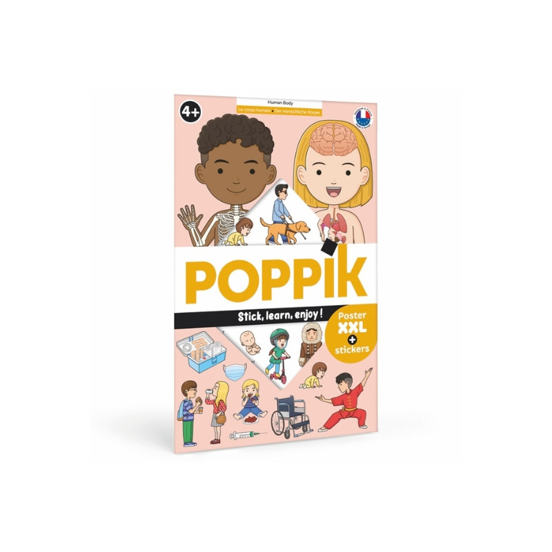 Un poster XXL et 49 stickers pour apprendre le corps humain dès 4 ans. Bilingue, éducatif et avec bonus audio, signé Poppik.