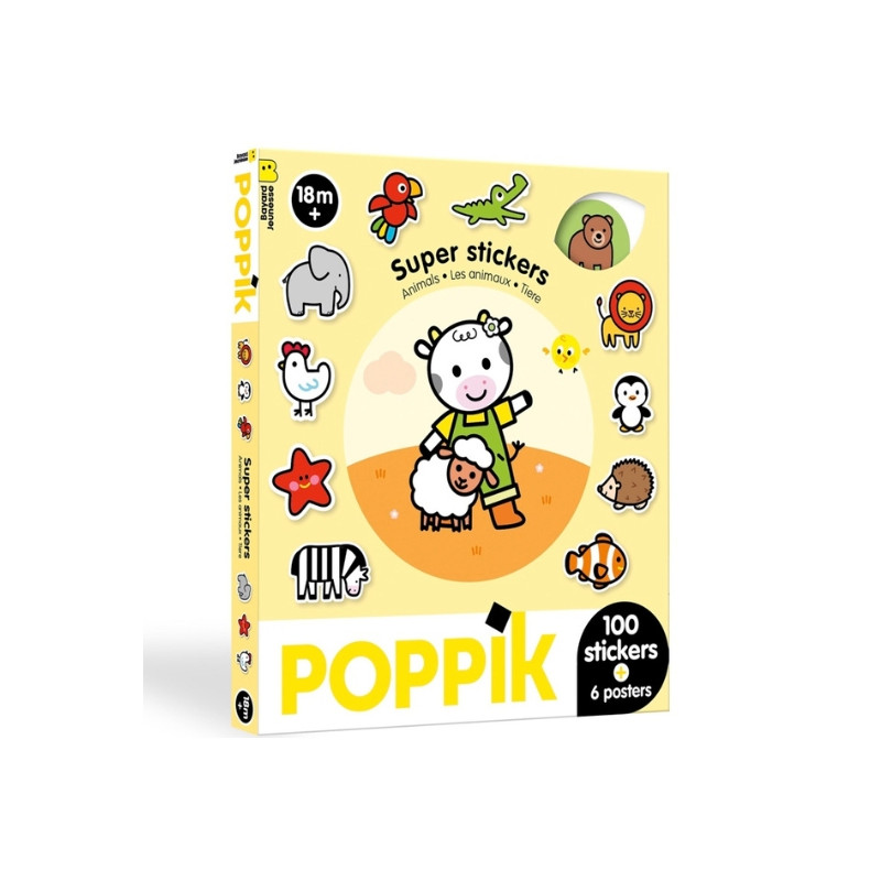 Un jeu de gommettes idéal dès 18 mois. Avec le coffret Super Stickers Les Animaux de Poppik, les enfants découvrent la faune tout en développant leur motricité fine. 100 stickers à manipuler facilement pour compléter 6 grands décors colorés : savane, banquise, jardin et plus encore. Ludique, propre et éducatif.