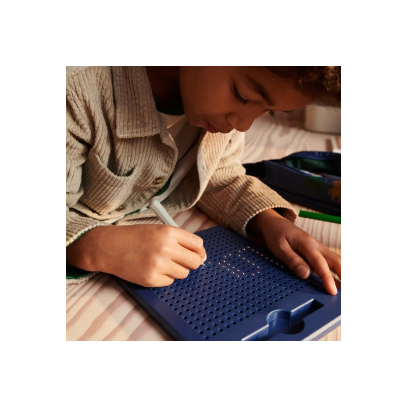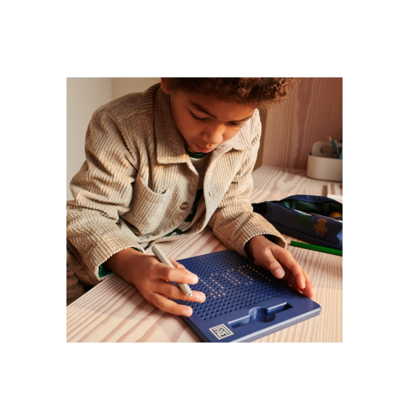 Le tableau magnétique Annelise de Liewood stimule la créativité des enfants grâce à son stylo magnétique qui permet de dessiner et effacer facilement. Réutilisable et écologique, il est fabriqué en plastique ABS recyclé (60%). Léger et compact, il se transporte partout, offrant une alternative ludique et pratique au papier.