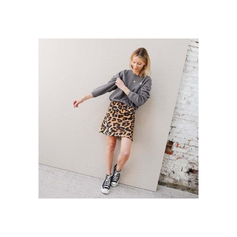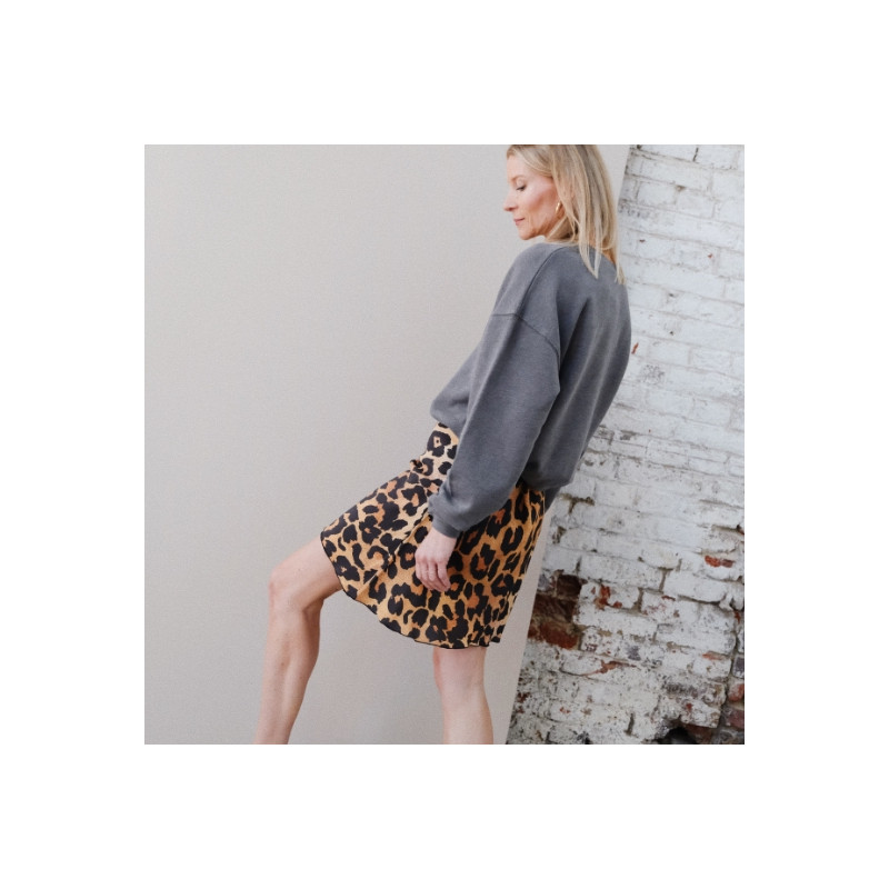 Découvrez la jupe imprimé "léopard" de la marque Musier Paris. Elle est composée à 100% en éco-vero viscose. Cette jupe arrive aux genoux et dispose d'une taille élastiquée.
