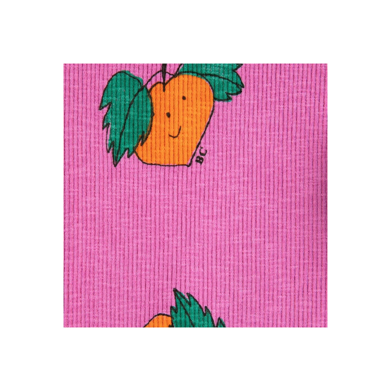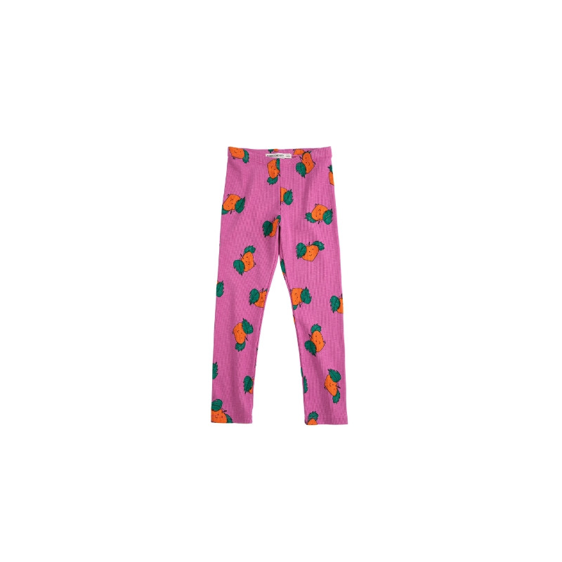 Legging enfant violet à imprimé mandarines, souple et confortable.
