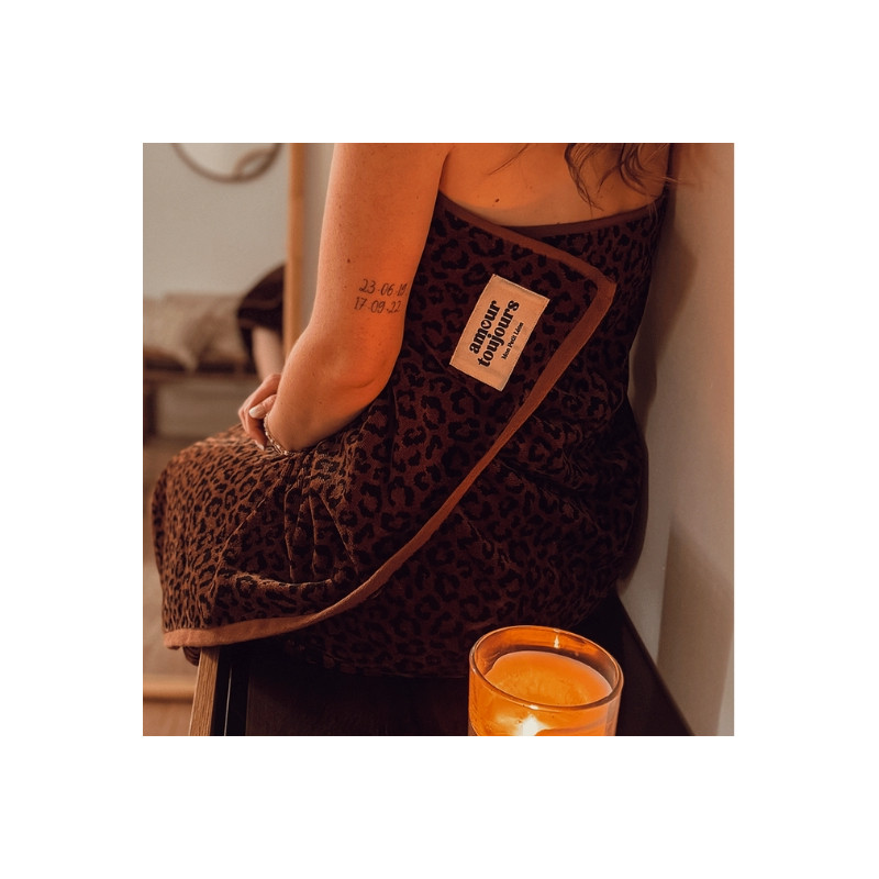 La serviette de bain Léopard en 100 % coton offre douceur et qualité. Avec son format 90 x 180 cm, elle est idéale à la maison comme à la plage.