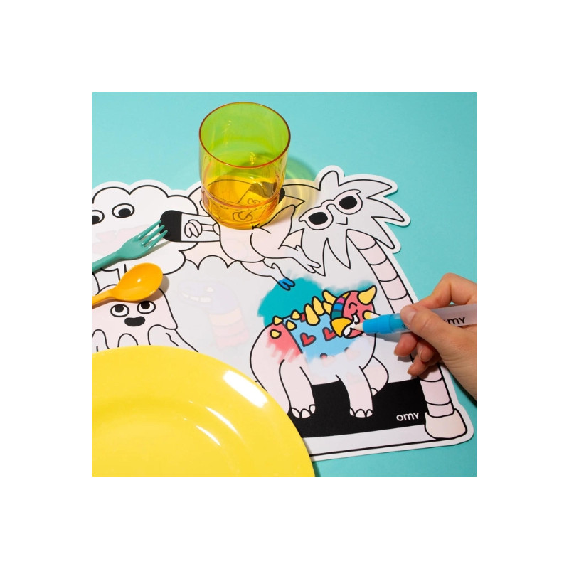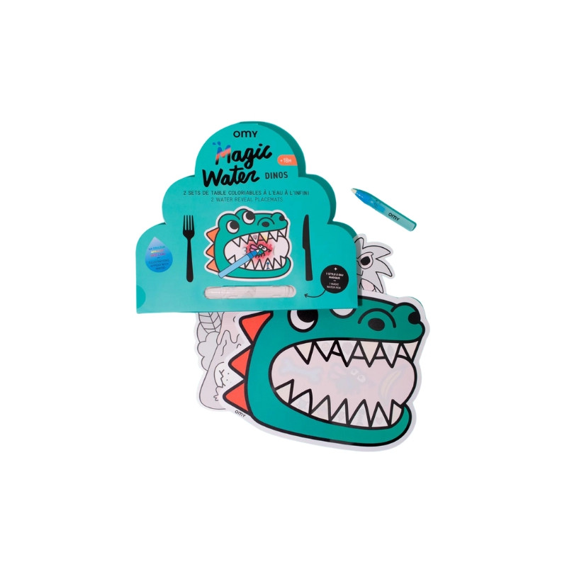 Découvrez les sets de table magiques "dinosaures" de la marque OMY. Ils offrent une expérience divertissante pour les plus petits. Passez le stylo magique rempli d’eau sur le set et regarder les couleurs apparaître comme par magie ! Ils sèchent en quelques minutes et les couleurs disparaissent. Quand c’est sec, on recommence, à l’infini !