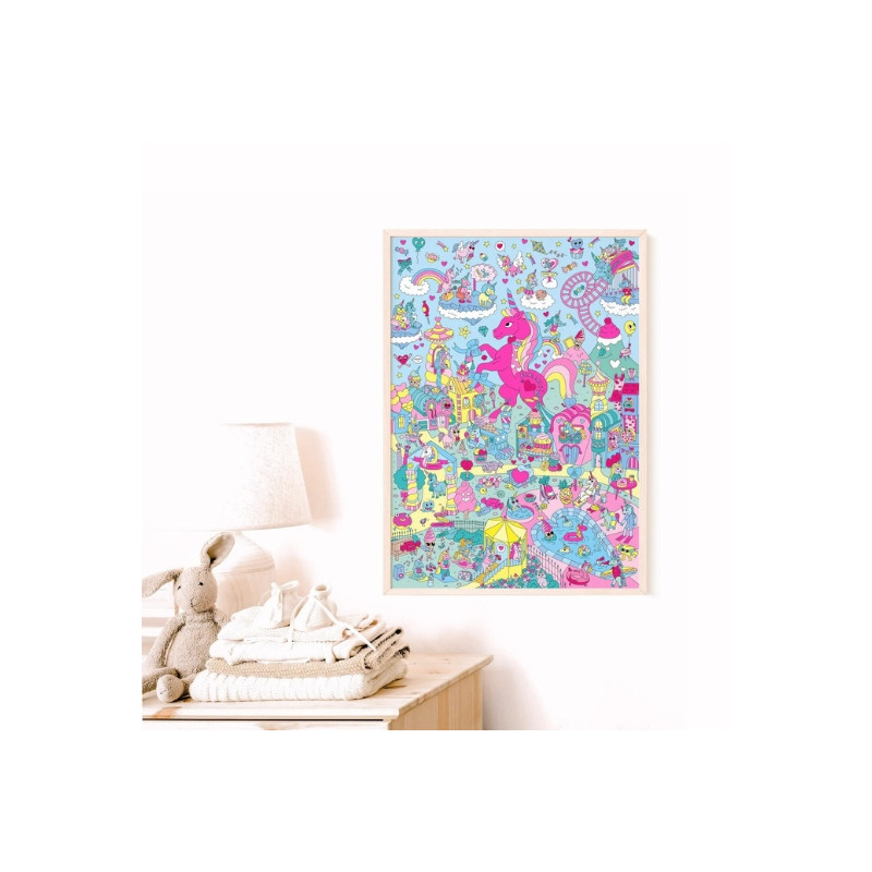 Vos enfants vont s'amuser sur cet espace artistique sans limites de chez OMY. Plongez dans l'univers des licornes avec ce coloriage géant. Votre enfant pourra s'amuser à le colorier seul, avec des amis ou en famille. Vous pourrez ensuite l'encadrer et vous en servir comme décoration.