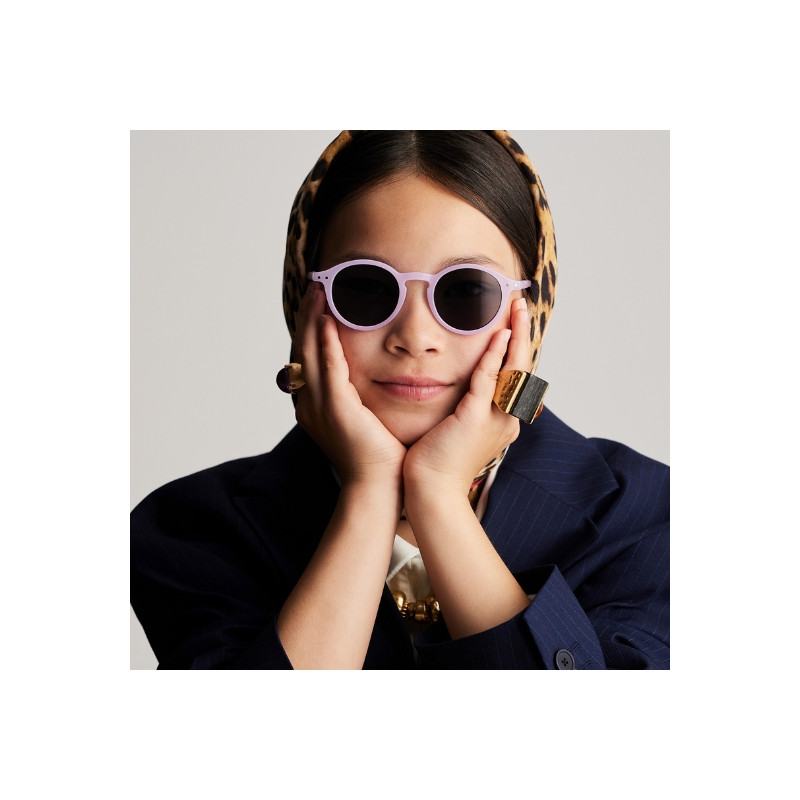 Les enfants de 5 à 7 ans vont pouvoir affronter les beaux jours comme des pros du look. Avec leur forme ronde rétro-chic et leur teinte lilas pleine de douceur, les junior sun signées IZIPIZI font rimer protection avec fashion.