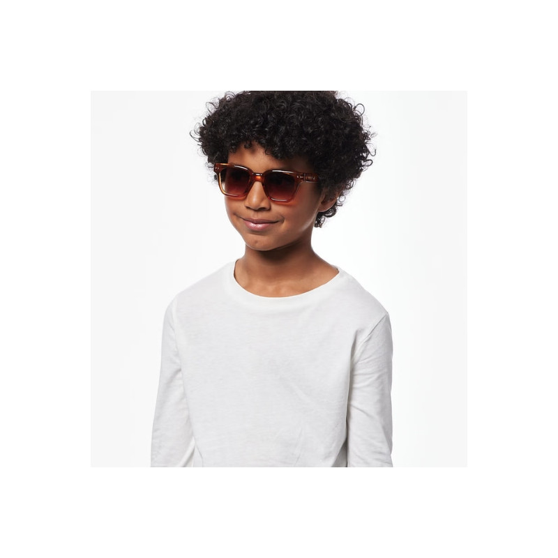 Les lunettes #road Glossy Havane de IZIPIZI x Bonpoint pour enfants de 7 à 11 ans allient style structuré et protection optimale. Un modèle élégant à la finition brillante et aux verres dégradés.