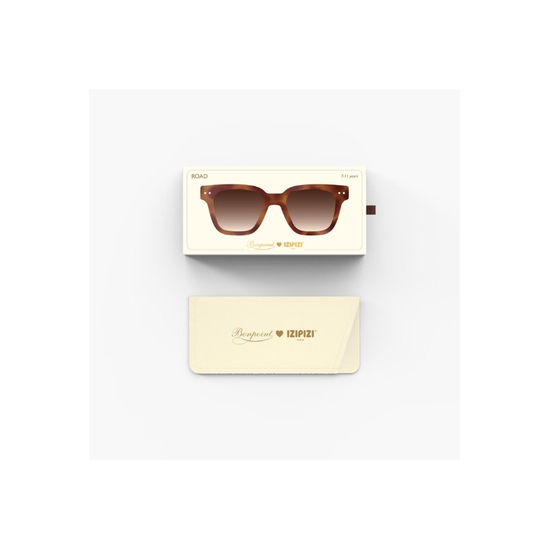 Les lunettes de soleil enfant #road Glossy Havane de IZIPIZI, issues de la collaboration exclusive avec la Maison Bonpoint, affichent un style affirmé et élégant. Conçues pour les enfants de 7 à 11 ans, elles se distinguent par leur monture carrée aux lignes structurées, habillée d’un motif havane lumineux et d’une finition brillante.