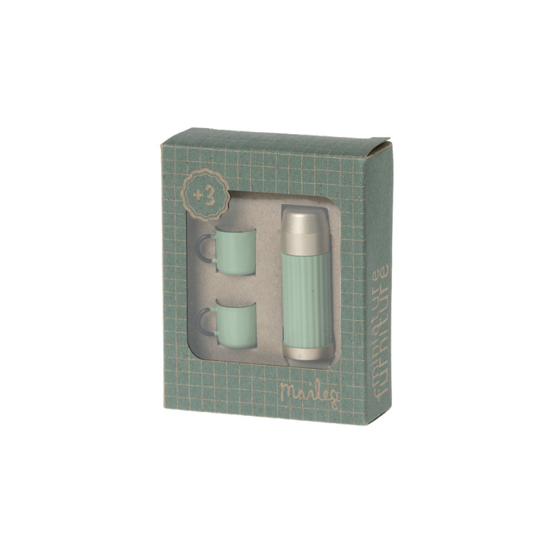 Le set de thermos et tasses bleu de chez Maileg est parfait pour emporter son café/thé en balade. Il est composé d'une bouteille thermos et de 2 tasses en métal. Ce set est parfaitement adapté aux souris et lapins Maileg. Retrouvez sur notre eshop et dans notre boutique little&tall à Lille, les petits animaux et les accessoires de la marque Maileg...Le plus dur restera de choisir. A partir de 3 ans et +