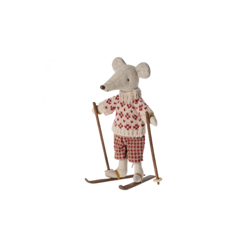 little&tall déclare la saison des sports d'hiver ouverte ! Emmenez avec vous vos souris Maileg pour une session ski endiablée. Avec ces bâtons et ces skis en bois, les souris dévaleront les pistes. Ils disposent d'élastique permettant d'être facilement fixé aux pieds et aux mains des souris. Conviennent à la taille maman/papa et grand-mère/grand-père.