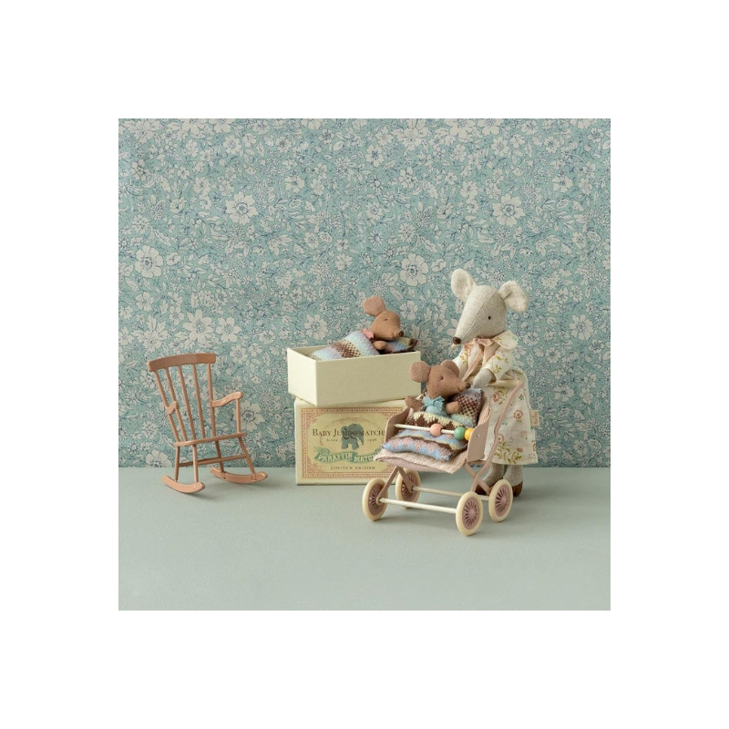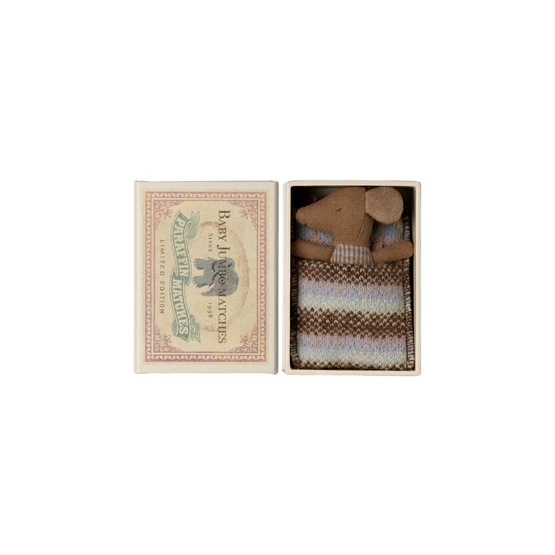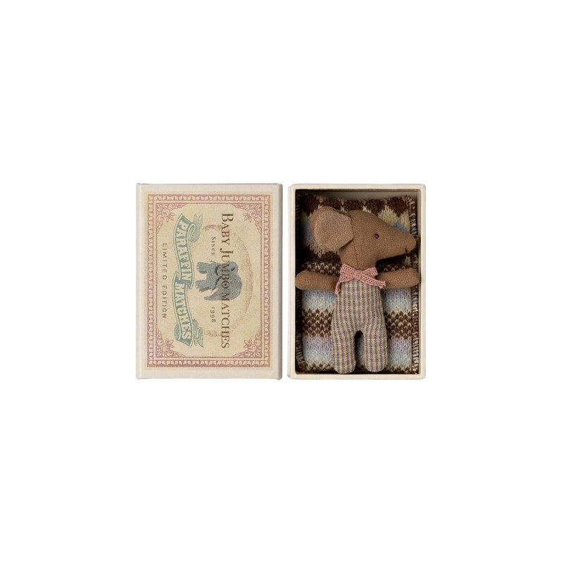 Poursuivez un temps de jeu magique avec cette souris bébé "sleepy walkey" de la marque Maileg. Mi-éveillée mi-endormie, elle dort paisiblement dans sa petite boîte en attendant d'être tirée de son sommeil pour des heures de jeu. Ses vêtements et son linge sont fabriqués dans des tissus doux aux imprimés uniques, afin d'ajouter une note de charme et de confort.