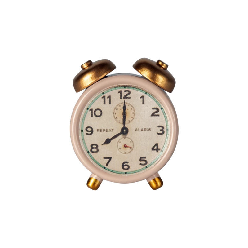 Driiiiing ! Il est temps pour nos petites souris de bondir hors du lit et de commencer une nouvelle journée pleine de découvertes ! Ce réveil miniature est le détail parfait pour compléter la chambre de vos amis Maileg. Avec son design vintage, ses petits pieds dorés et ses cloches en métal, il semble tout droit sorti d’un rêve rétro.