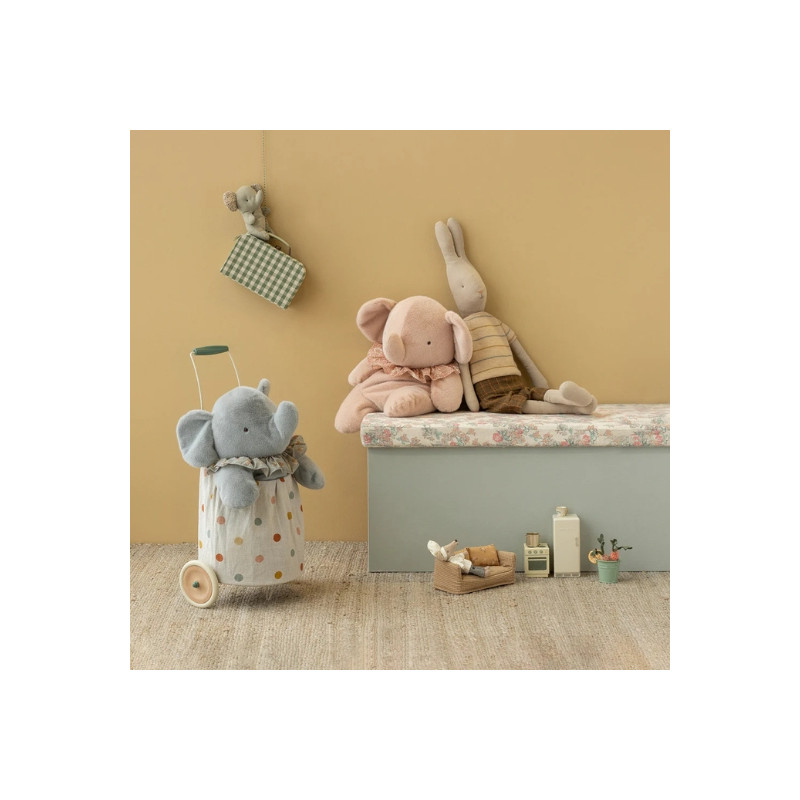 Cet adorable éléphant en peluche est confectionné dans une matière exceptionnellement douce qui offre un toucher délicat et réconfortant. Conçu pour accompagner les moments de tendresse, il invite aux câlins et devient rapidement un compagnon rassurant pour les enfants. Sa forme lui permet de s’asseoir seul, ce qui en fait aussi un joli élément décoratif dans une chambre. Avec son allure douce et son expression attendrissante, cet éléphant apporte chaleur et réconfort aux petits comme aux grands.