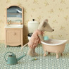 Un véritable classique de l’univers Maileg, cette adorable souris est prête pour de longues heures de jeu et de tendresse. Elle dort confortablement dans sa petite boîte d’allumettes, qui lui sert de lit douillet. Ses vêtements et sa literie sont confectionnés dans des tissus doux aux motifs uniques et aux couleurs délicates, apportant un charme poétique à l’ensemble. Grâce aux aimants placés dans ses mains, la souris peut facilement tenir certains accessoires et enrichir les histoires imaginées par les enfants. Le tissu peut légèrement varier, rendant chaque pièce unique.