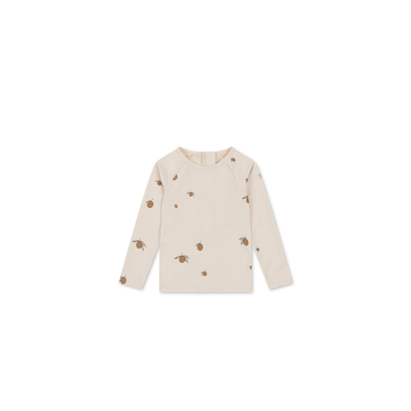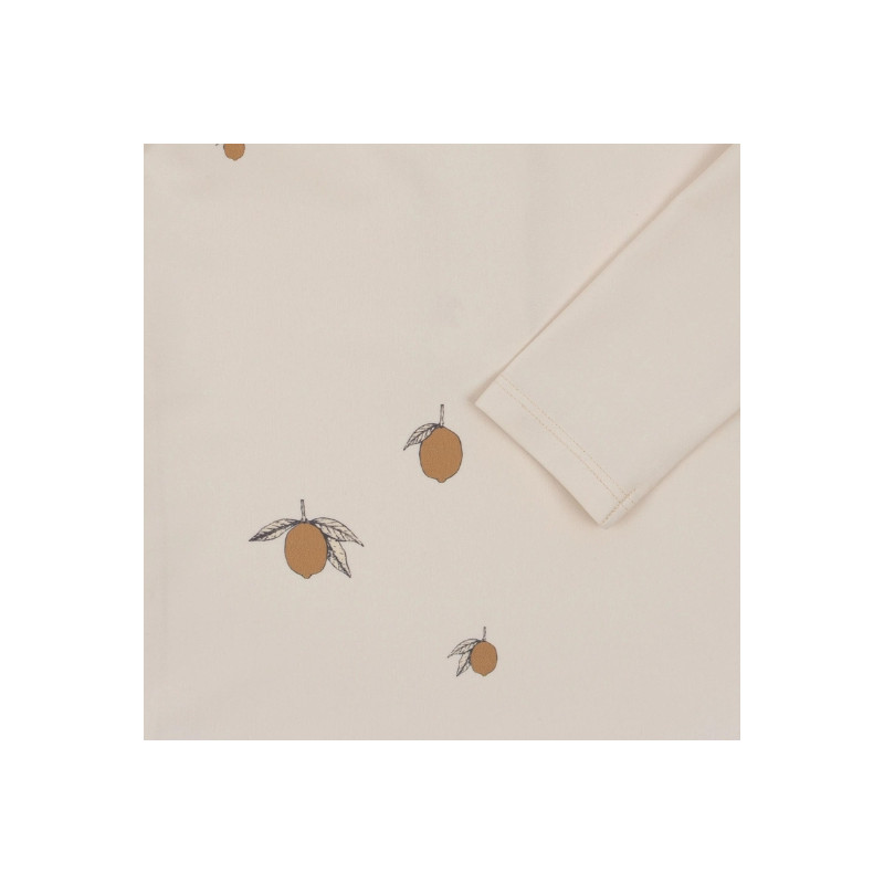 Soyez prêt à affronter le soleil estival avec style grâce au t-shirt anti-UV "lemon" de la marque Konges Slojd. Fabriqué à partir de polyester recyclé et d'élasthane, il allie confort, durabilité et respect de l'environnement.