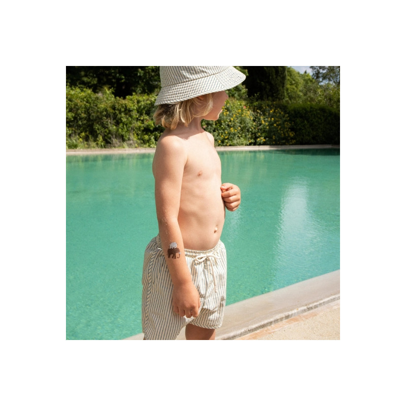 Le short de bain Asnou dans son imprimé "stripe blue" de chez Konges Slojd accompagnera votre enfant tout l'été! Léger, il est confectionné en nylon afin de procurer un confort optimal et un séchage rapide. Au bord de la piscine ou à la plage, il assurera des moments de fun au soleil, le tout avec élégance. Disponible en modèle bébé.