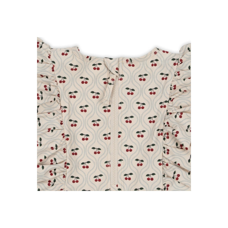 La combinaison de bain Konges Slojd dans son imprimé "cherry" est l'indispensable pour d'agréables moments de baignade tout en confort. Confectionnée en polyester recyclé et en élasthanne, elle est légère et se ferme facilement grâce à une fermeture éclair à l'arrière. Son tissu est extensible et protègera vos petits bouts des rayons UV jusqu'à UPF 50+, pour s'amuser au soleil tout en sécurité.