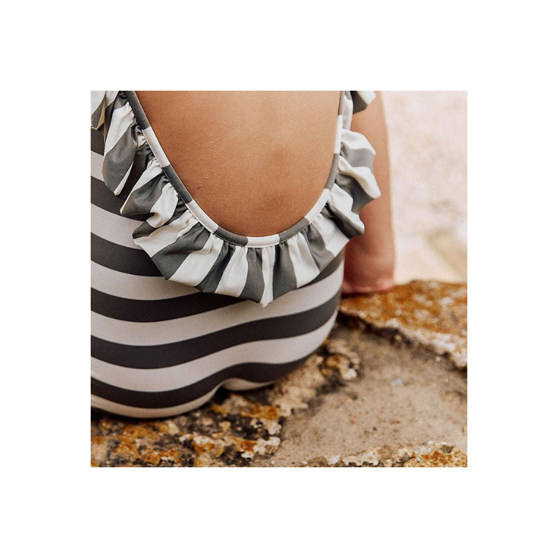 Le maillot de bain Arabella terra de la marque Canopéa incarne le charme d’une méditerranée ensoleillée. Doté d'un dos ouvert et de larges bretelles à volants, il dispose de rayures graphiques de couleur blanche et sable. Certifié UPF 50+, ce maillot de bain anti-UV bloquera 98% des UVA et UVB sans filtre chimique. Il est conseillé de le laver à 30°C maximum et de ne pas le sécher en machine. Il est disponible de 2 à 10 ans.