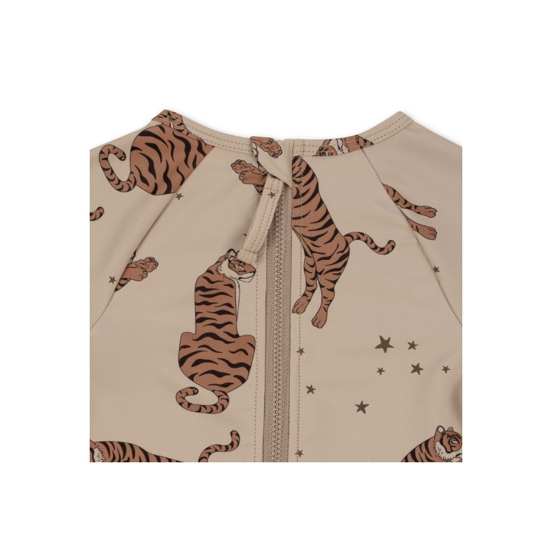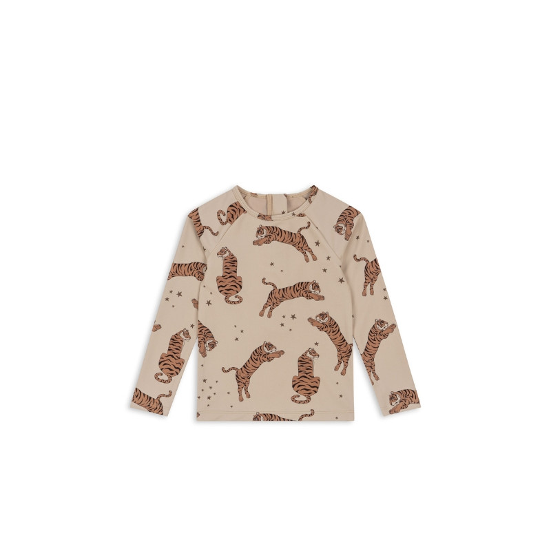 Préparez votre petit aventurier pour les journées ensoleillées avec le t-shirt UV imprimé tigre de la marque Konges Slojd. Conçu pour offrir style et protection, ce t-shirt offre une barrière fiable contre les rayons nocifs du soleil grâce à son tissu à indice de protection UV.