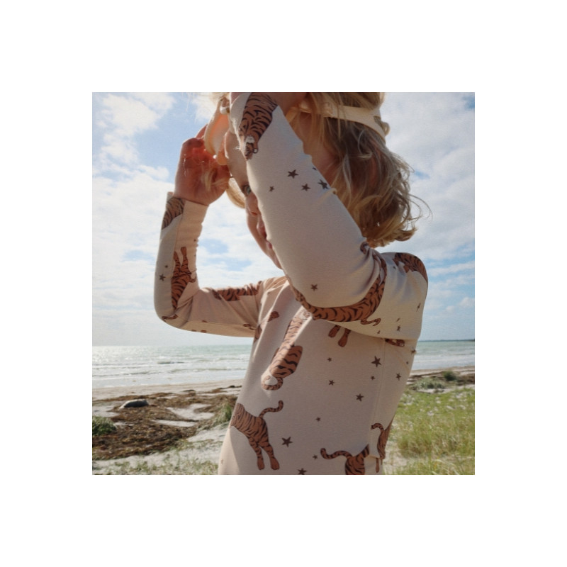 Que ce soit pour une journée à la plage, une promenade en ville ou une séance de jeux au parc, le t-shirt UV imprimé tigre de Konges Slojd est un choix parfait pour garder votre enfant protégé et stylé sous le soleil.